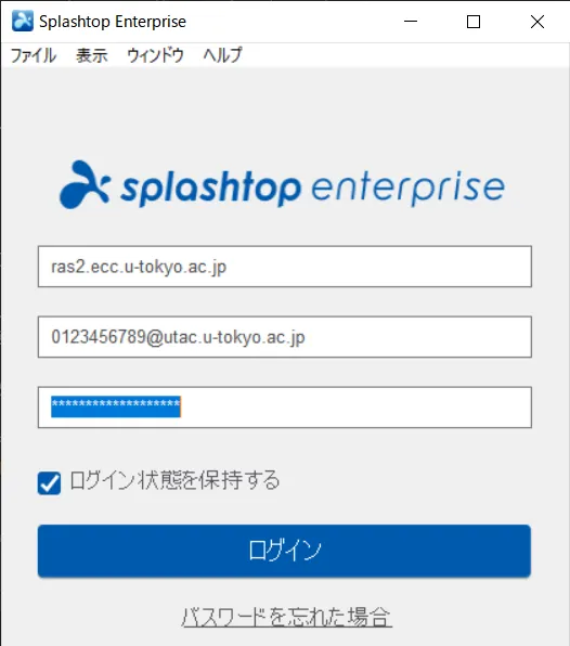 リモートアクセス環境へは,専用アプリ(Splashtop Enterprise)から接続します.ここでは、Windowsのアプリを例に説明します.