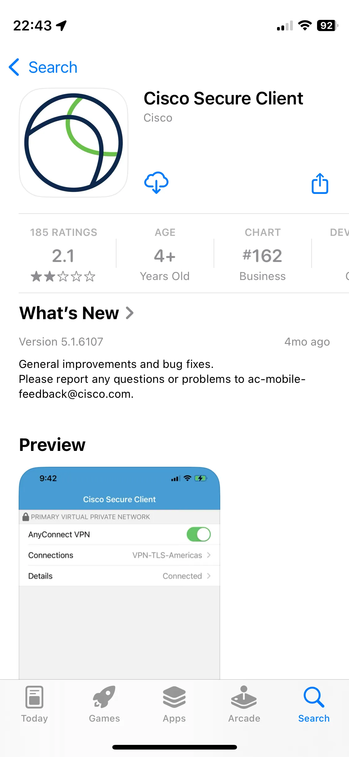 Step A: Access the App Store and install the Cisco Secure Client app from Cisco.