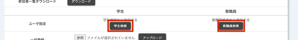 - 「ユーザ指定」欄の「学生検索」または「教職員検索」ボタンを押してください.